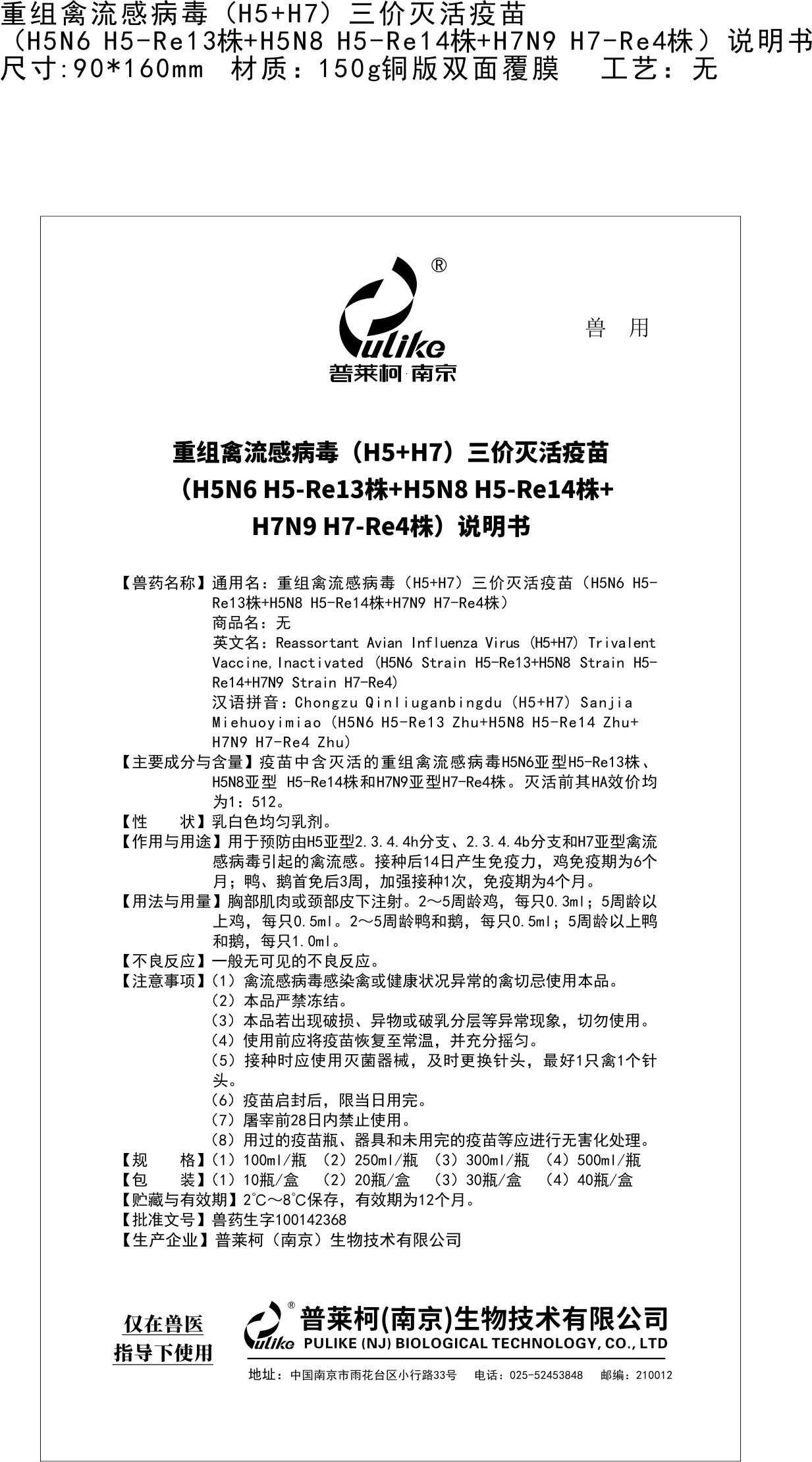 重組禽流感病毒(H5+H7)三價(jià)滅活疫苗