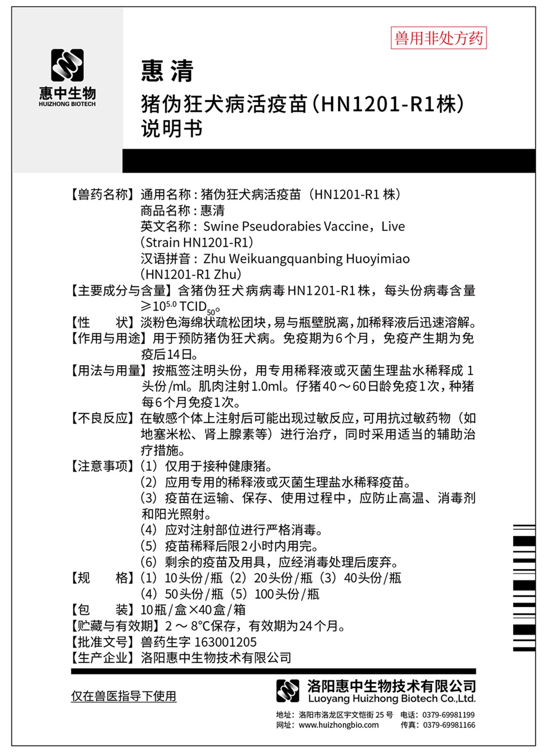 豬偽狂犬病活疫苗(HN1201-R1株)